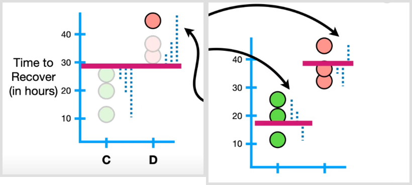 Alternative hypothesis: There is a difference in recovery times between C and D.