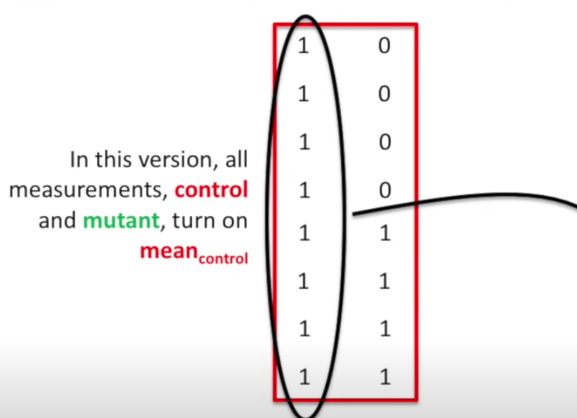 - The 2nd col: consists with 0s and 1s, meaning whether the mutant offset is on or off. The control group is 0, and the mutant group is 1.