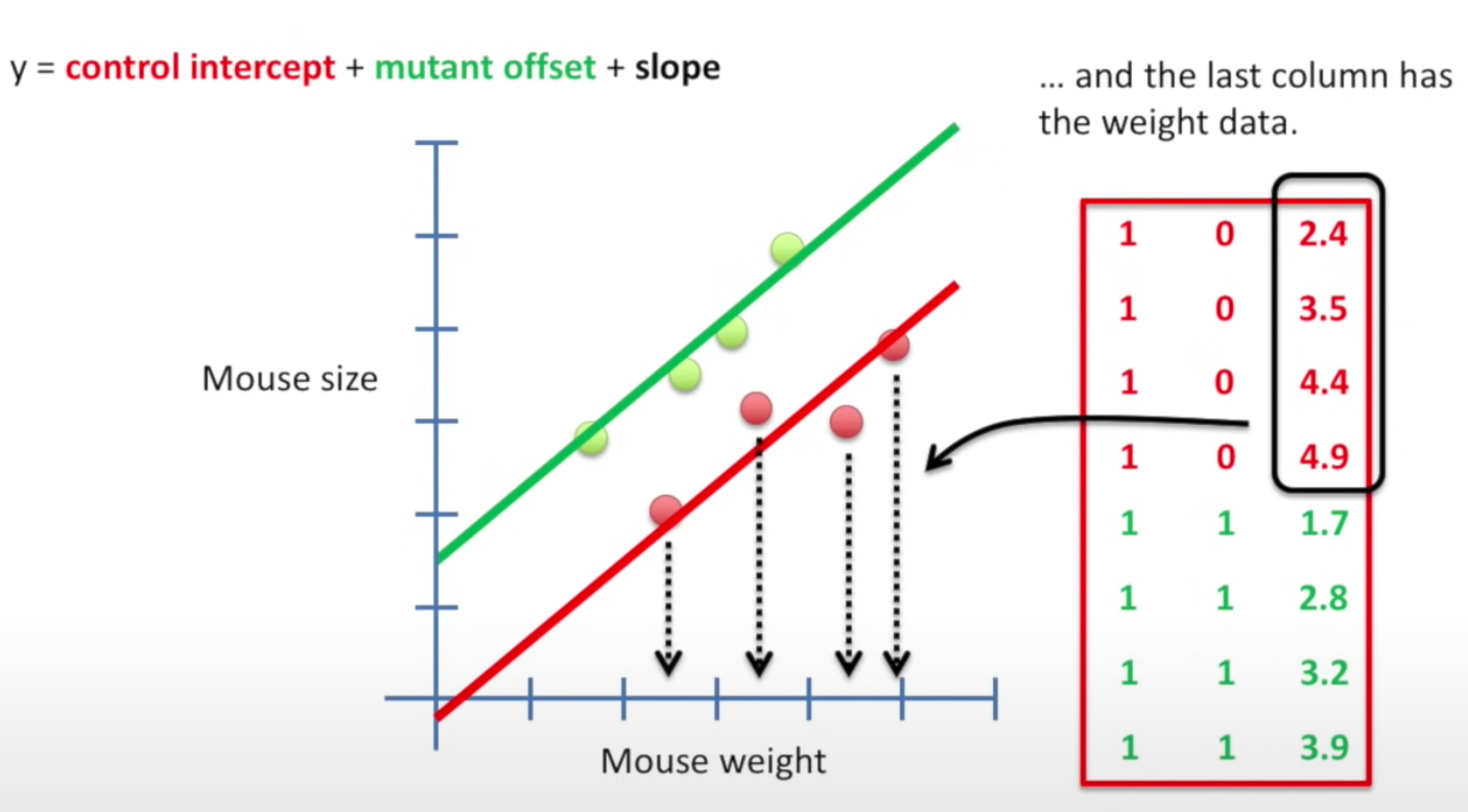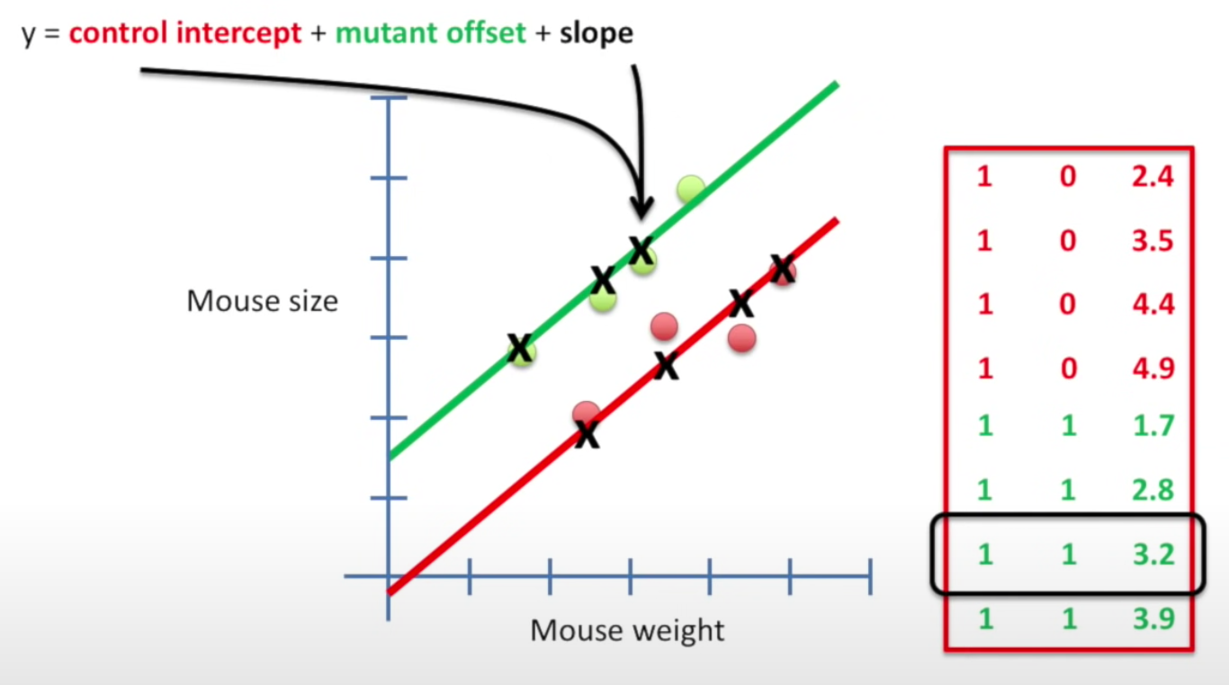- The 1st col: all 1’s so that both lines has the y-intercept
