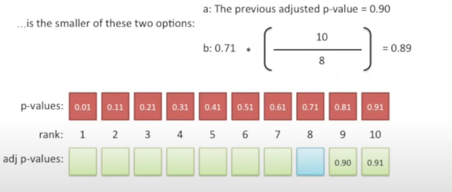 - The next largest adjusted p-value, which is the smallest of the two options: