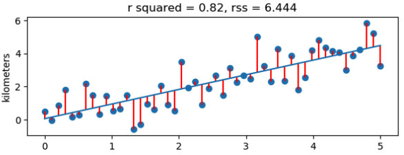 Residual sum of squares (RSS)* are the differences between the data and the line. We sum the square of these values, because the square result won’t neglect the positive/negative value.