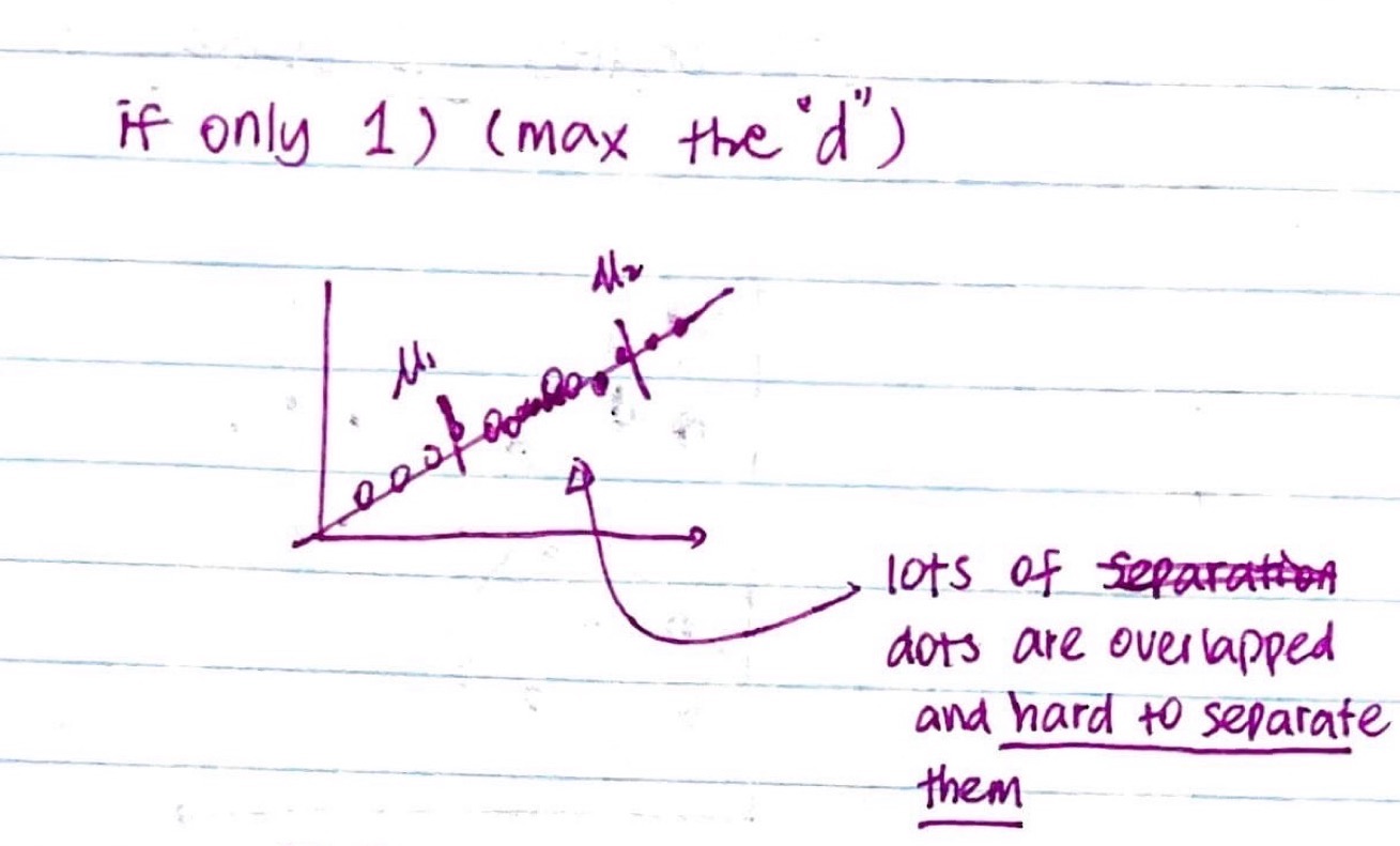 If we only maxmize , there will be lots of dots overlapped and thus hard to separate them.