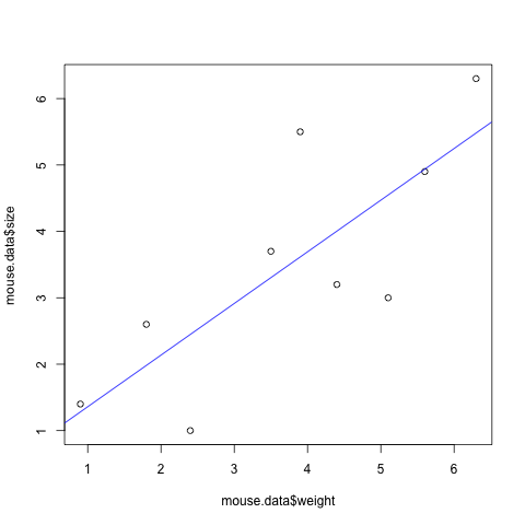 mouse.regression <- lm(size ~ weight, data=mouse.data)