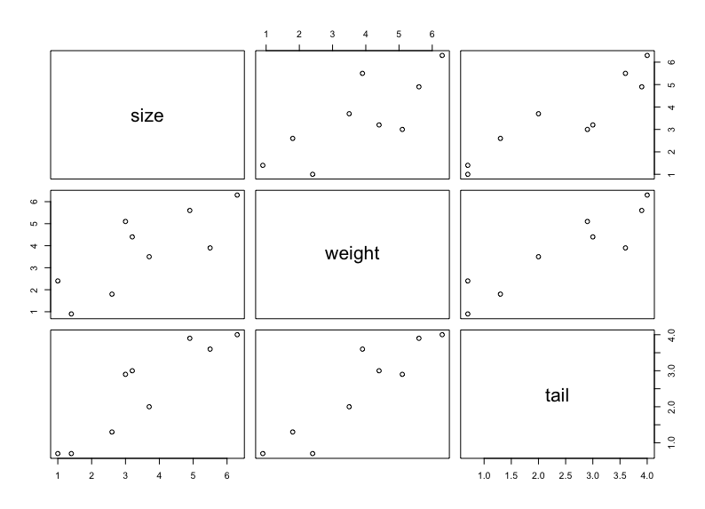 weight = c(0.9, 1.8, 2.4, 3.5, 3.9, 4.4, 5.1, 5.6, 6.3),