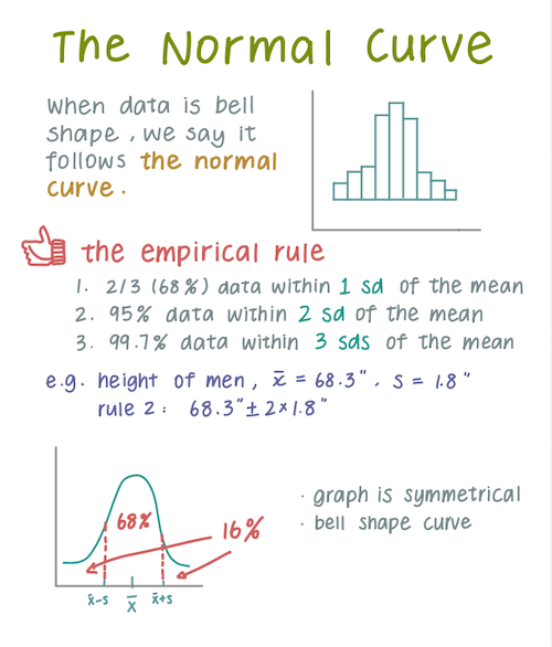 A bell shape curve. Also called Gaussian distribution or normal curve.