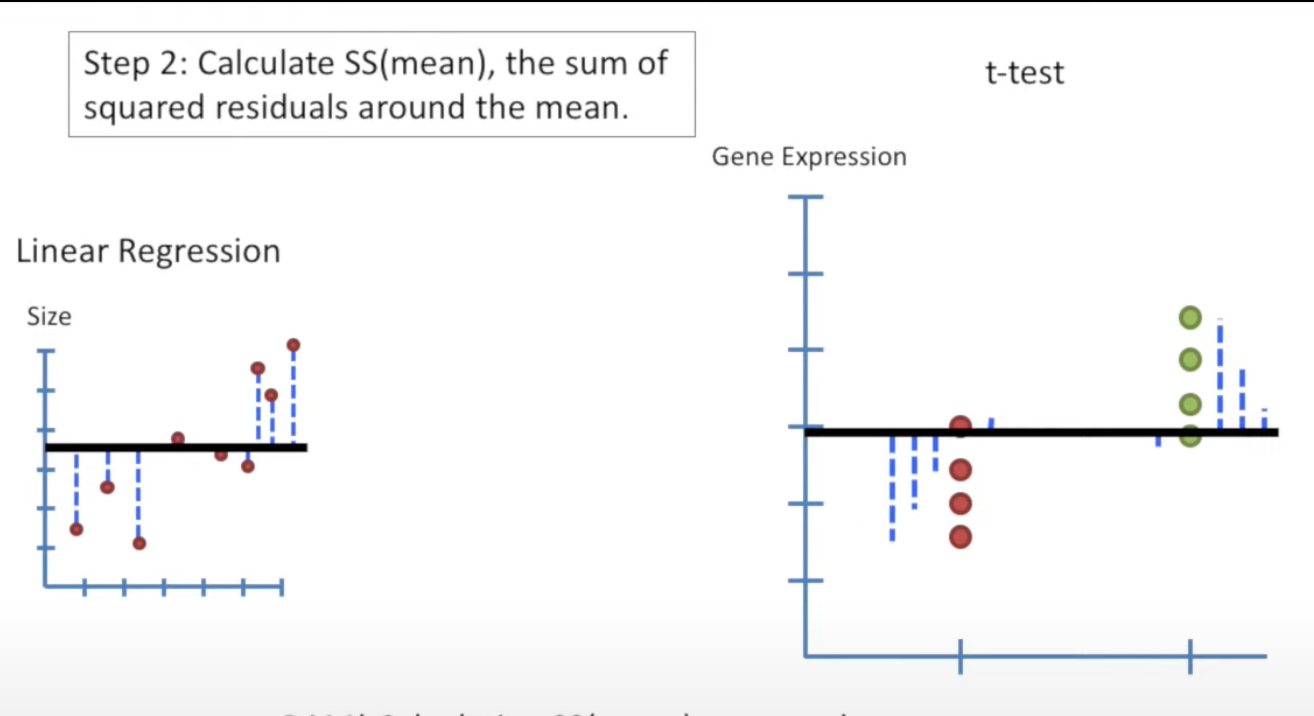 SS(mean) = sum of squared residuals around the mean.