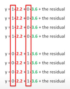The 1s and 0s forms a Design matrix, which can be combined to: