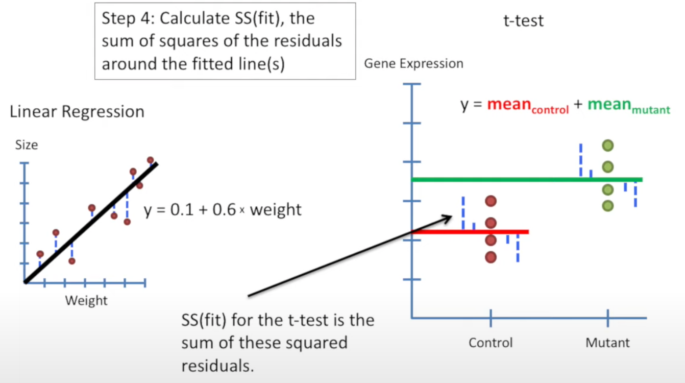 SS(fit) for t-test is the ss for two lines.