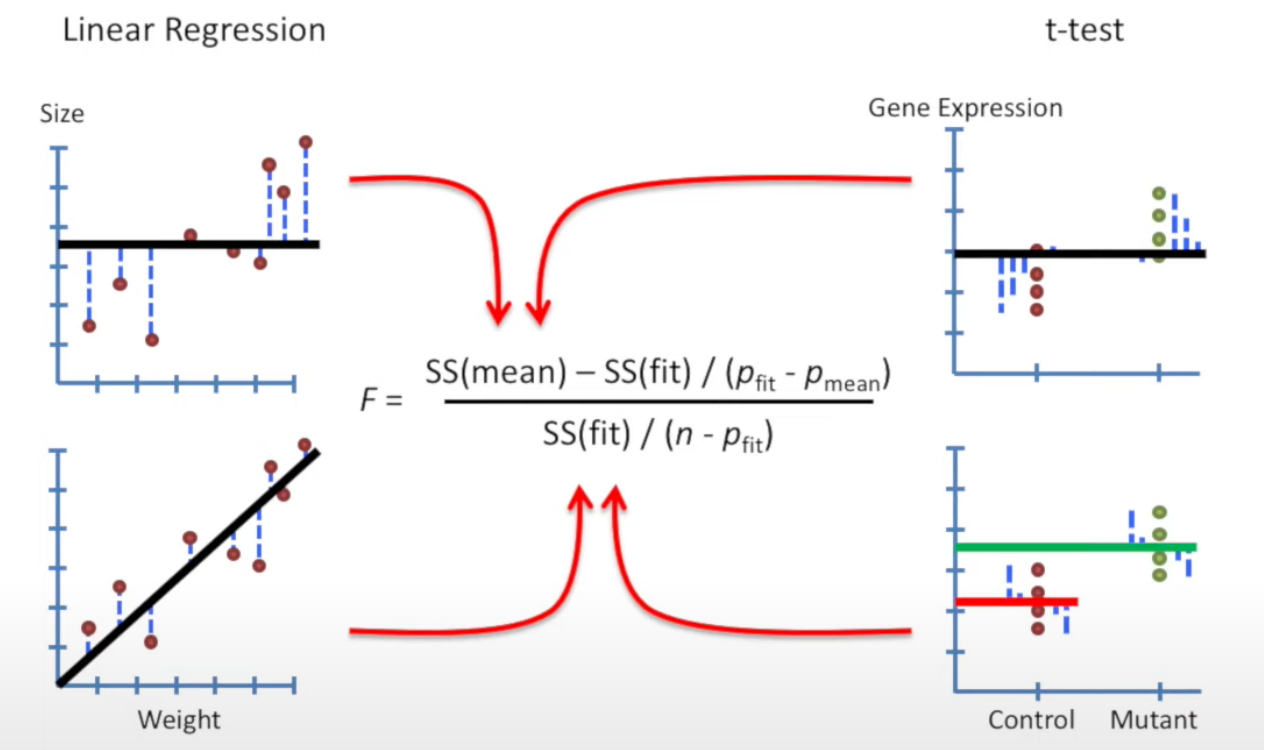 The two concepts from Linear regresssion can also be applied to t-test.